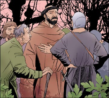 A partir de ese momento, Francisco toma el hábito de eremita: un rudo paño, los pies apenas cubiertos, bastón en mano y una correa de cuero. Sin embargo, hay algo que lo distingue de otros eremitas: vuelve frecuentemente a la ciudad a mendigar para conseguir piedras para la restauración de la capilla de San Damián y aceite para las lámparas de la iglesia. Muchas personas lo miran, un poco enternecidas. Pero muchos otros lo desprecian y se burlan de él. ¡Imaginad! ¡Él, el hijo de un notable de Asís, ir de puerta en puerta mendigando piedras, cuando no pan para alimentarse! No, verdaderamente, ¡ja, ja, ja, es muy divertido! Este hecho, que es mucho más fácil contar que vivir, merece destacarse: Francisco