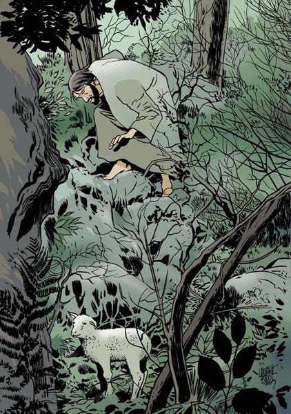 ¿Qué hace el buen pastor durante este tiempo? Encierra en un lugar seguro a las noventa y nueve ovejas fieles y luego se pone en camino y no se detiene hasta que encuentra el rastro de la oveja perdida. Como ella no vuelve, él va por ella. La ve a lo lejos, embriagada y enlazada por los reptiles, tan ebria que no siente nostalgia por el rostro que la ama, y se burla de él. Y él la mira, culpable de haber entrado como una ladrona en morada ajena, tan culpable que ella no se atreve a mirarlo más… Y sin embargo el pastor no se cansa, y continúa. La busca, la busca, la sigue, la acosa. Llora sobre el rastro de la descarriada: jirones de vellón, jirones de alma, rastros de sangre; delitos de todo tipo; basura; testimonios de su lujuria. Continúa y la alcanza.