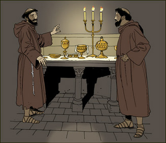Un día, el hermano Pedro Cattani, Vicario de la Orden, viendo que afluían a Santa María de Porciúncula multitudes de hermanos extranjeros se sintió muy abrumado por tener que alimentar a todo el mundo, pues las limosnas no eran suficientes. Entonces dijo a Francisco: “Hermano, no sé qué hacer cuando no alcanzo a atender como conviene a los muchos hermanos que se concentran aquí de todas partes en tanto número. Te pido que tengas a bien que se reserven algunas cosas de los novicios que entran como recurso para poder distribuirlas en ocasiones semejantes”. “Carísimo hermano, respondió Francisco, lejos de nosotros esa piedad que, por favorecer a los hombres, actuemos impíamente contra la Regla”. “¿Y entonces qué debo hacer?”, replicó el hermano Pedro Cattani. Francisco respondió: “Si no puedes atender de otro modo a los que vienen, quita los atavíos y las variadas galas de la Virgen. Créeme: la Virgen verá más a gusto observado el Evangelio de su Hijo y despojado su altar, que adornado su altar y despreciado su Hijo. El Señor enviará quien restituya a la Madre lo que ella nos ha prestado” (2C 67). Tal relato nos muestra cuán en serio tomaba Francisco la imitación de la pobreza de María, pero también cómo esta pobreza se integraba en una vida enteramente conforme al Evangelio.
