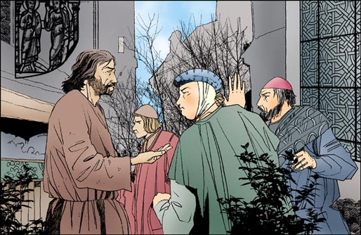 A partir de ese momento, Francisco toma el hábito de eremita: un rudo paño, los pies apenas cubiertos, bastón en mano y una correa de cuero. Sin embargo, hay algo que lo distingue de otros eremitas: vuelve frecuentemente a la ciudad a mendigar para conseguir piedras para la restauración de la capilla de San Damián y aceite para las lámparas de la iglesia. Muchas personas lo miran, un poco enternecidas. Pero muchos otros lo desprecian y se burlan de él. ¡Imaginad! ¡Él, el hijo de un notable de Asís, ir de puerta en puerta mendigando piedras, cuando no pan para alimentarse! No, verdaderamente, ¡ja, ja, ja, es muy divertido! Este hecho, que es mucho más fácil contar que vivir, merece destacarse: Francisco