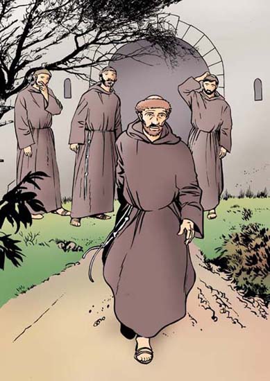 Pero sucede que muy temprano por la mañana, cuando el sol todavía no ha salido, Francisco despierta a Maseo y le dice: “Vayámonos rápido antes de que alguien se despierte, porque aquí nos tratan demasiado bien”. Y, a espaldas de todos, incluso del obispo, abandonan Siena sin hacer el menor ruido.