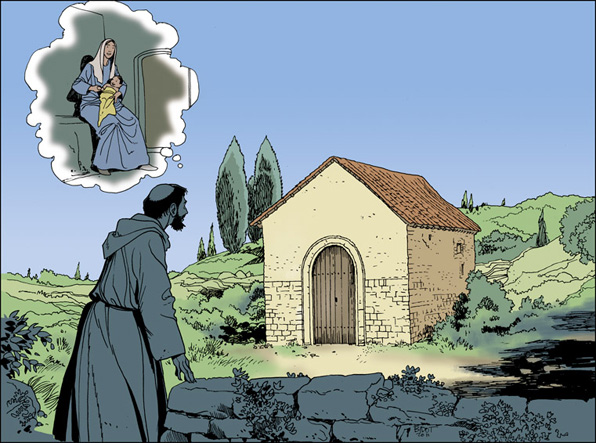 Un día, el hermano Pedro Cattani, Vicario de la Orden, viendo que afluían a Santa María de Porciúncula multitudes de hermanos extranjeros se sintió muy abrumado por tener que alimentar a todo el mundo, pues las limosnas no eran suficientes. Entonces dijo a Francisco: “Hermano, no sé qué hacer cuando no alcanzo a atender como conviene a los muchos hermanos que se concentran aquí de todas partes en tanto número. Te pido que tengas a bien que se reserven algunas cosas de los novicios que entran como recurso para poder distribuirlas en ocasiones semejantes”. “Carísimo hermano, respondió Francisco, lejos de nosotros esa piedad que, por favorecer a los hombres, actuemos impíamente contra la Regla”. “¿Y entonces qué debo hacer?”, replicó el hermano Pedro Cattani. Francisco respondió: “Si no puedes atender de otro modo a los que vienen, quita los atavíos y las variadas galas de la Virgen. Créeme: la Virgen verá más a gusto observado el Evangelio de su Hijo y despojado su altar, que adornado su altar y despreciado su Hijo. El Señor enviará quien restituya a la Madre lo que ella nos ha prestado” (2C 67). Tal relato nos muestra cuán en serio tomaba Francisco la imitación de la pobreza de María, pero también cómo esta pobreza se integraba en una vida enteramente conforme al Evangelio.