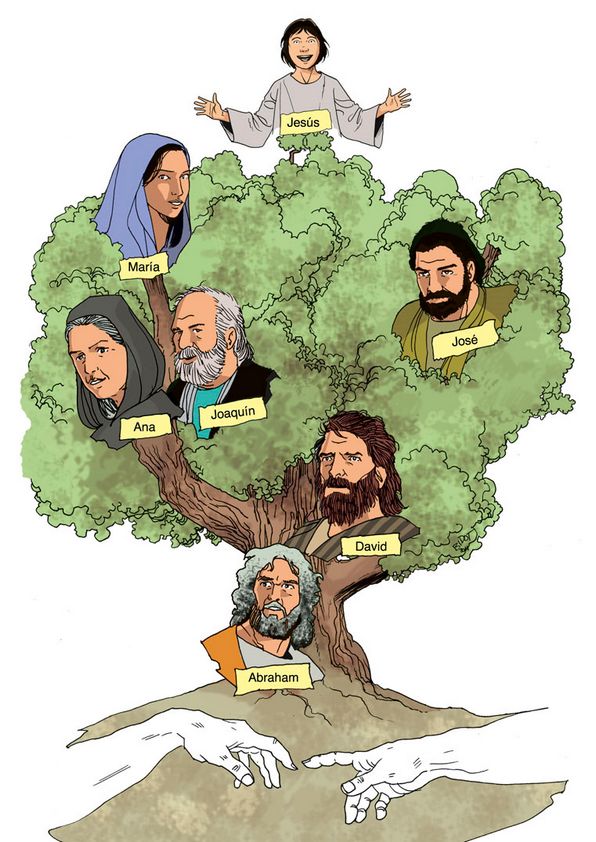 Este poema mesiánico precisa ciertos rasgos esenciales del Mesías que vendrá, sobre todo sus orígenes davídicos (ya que David es hijo de Jesé). El tallo que sale del tronco de Jesé no es otro que María. Aprovechemos este pasaje para detenernos por unos instantes en las dos genealogías de Cristo que se encuentran en los evangelios, una proveniente del evangelio de Mateo * Mt 1, 1-17 y Lc 3, 23-28. Señalemos de paso que Mateo insiste en el número de catorce generaciones que componen cada grupo: “El total de generaciones es entonces: de Abraham a David, catorce generaciones; de David a la deportación de Babilonia, catorce generaciones, de la deportación de Babilonia a Cristo, catorce generaciones”. Parece que este número ha sido retenido voluntariamente, puesto que es múltiplo de la cifra siete, que expresa la plenitud. “Voluntariamente” porque para lograr llegar a catorce ha sido necesario suprimir los nombres de algunos personajes “menos importantes” históricamente que aquellos que han sido retenidos en la genealogía. Veamos un ejemplo: si Pedro engendró a Remi, el cual engendró a Miguel, que a su vez engendró a José, el último de la lista muy bien podría presentar su árbol genealógico de la siguiente manera: Pedro engendró a José, saltando así dos generaciones. En la genealogía lucana cada grupo de nombres es igualmente un múltiplo de siete: veintiún nombres en el primero, segundo y cuarto grupo; catorce nombres en el tercer grupo. Por el mismo motivo de “arreglo numérico” no encontramos a Joaquín, Padre de la Virgen María, en el primer grupo de veintiuno. y la otra del de Lucas (te invitamos a ti, lector de estas líneas, a que los consultes desde ahora para que puedas apreciar el siguiente comentario).